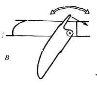 А — кинжальный; Б — ющийся секторный, В — качающийся мечевидный